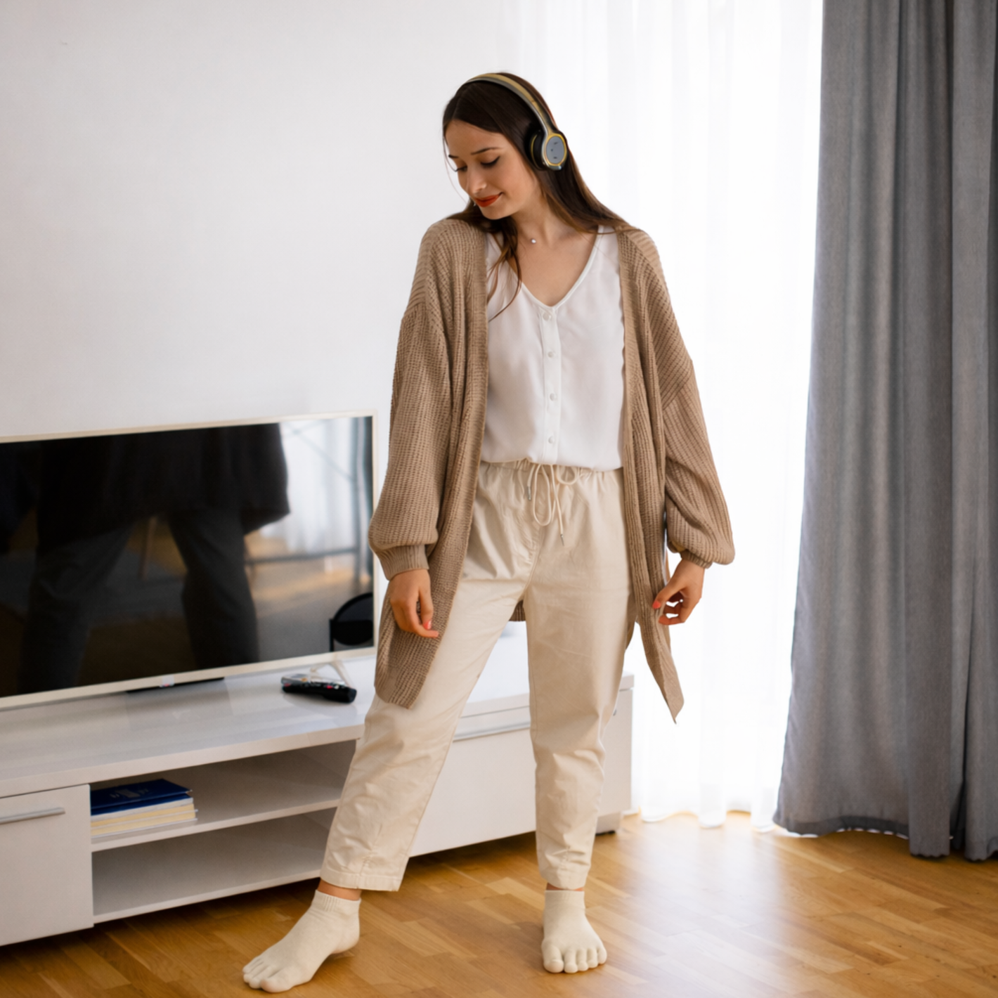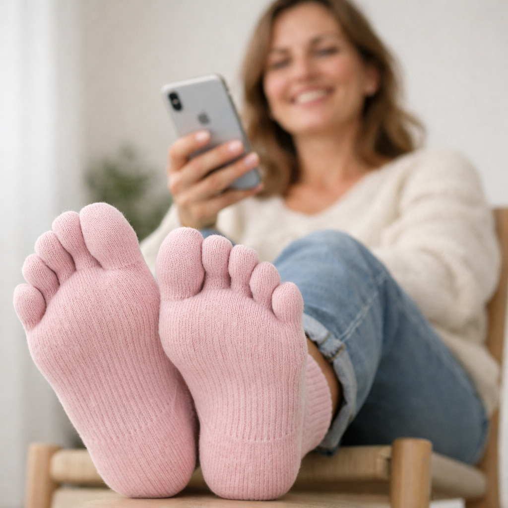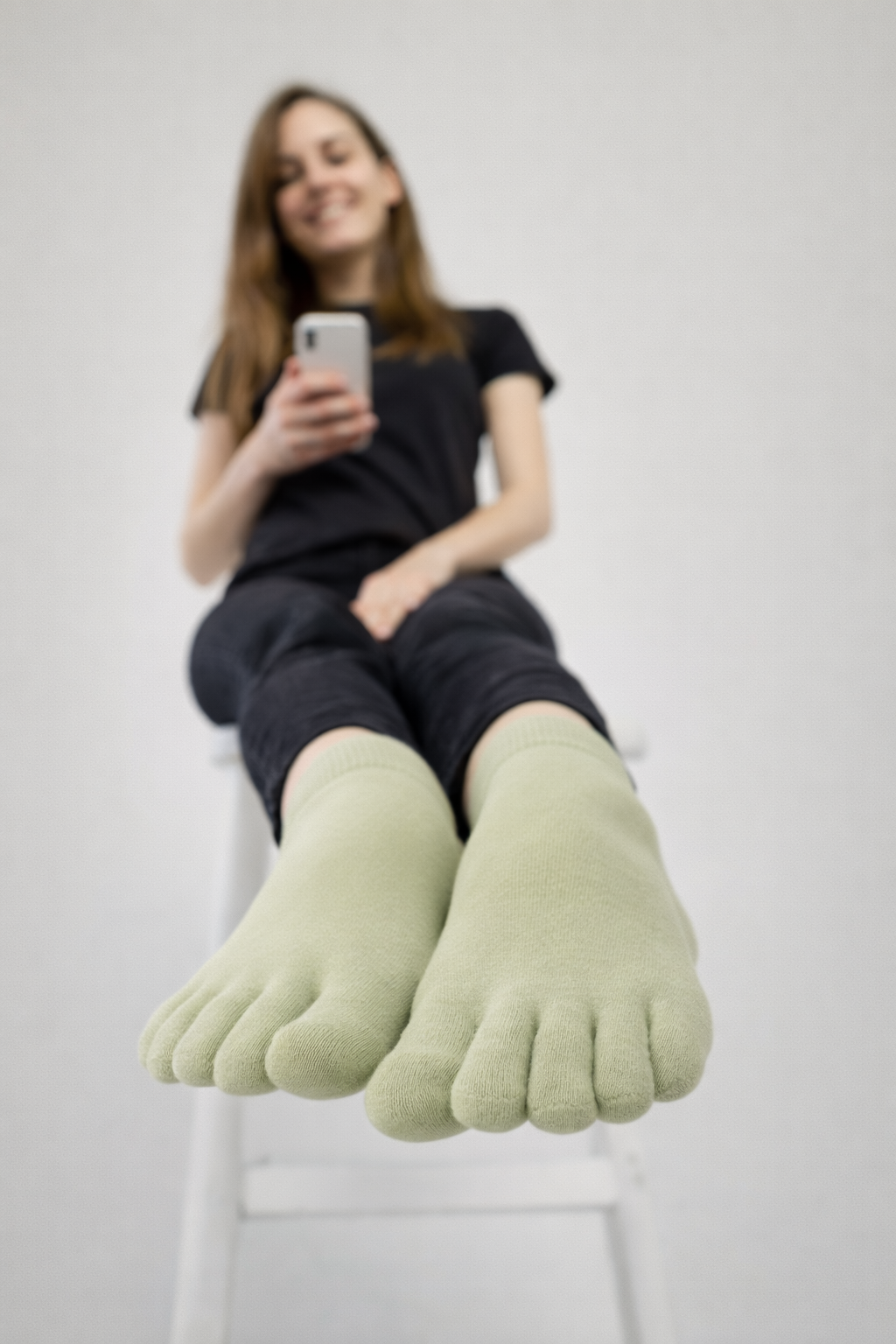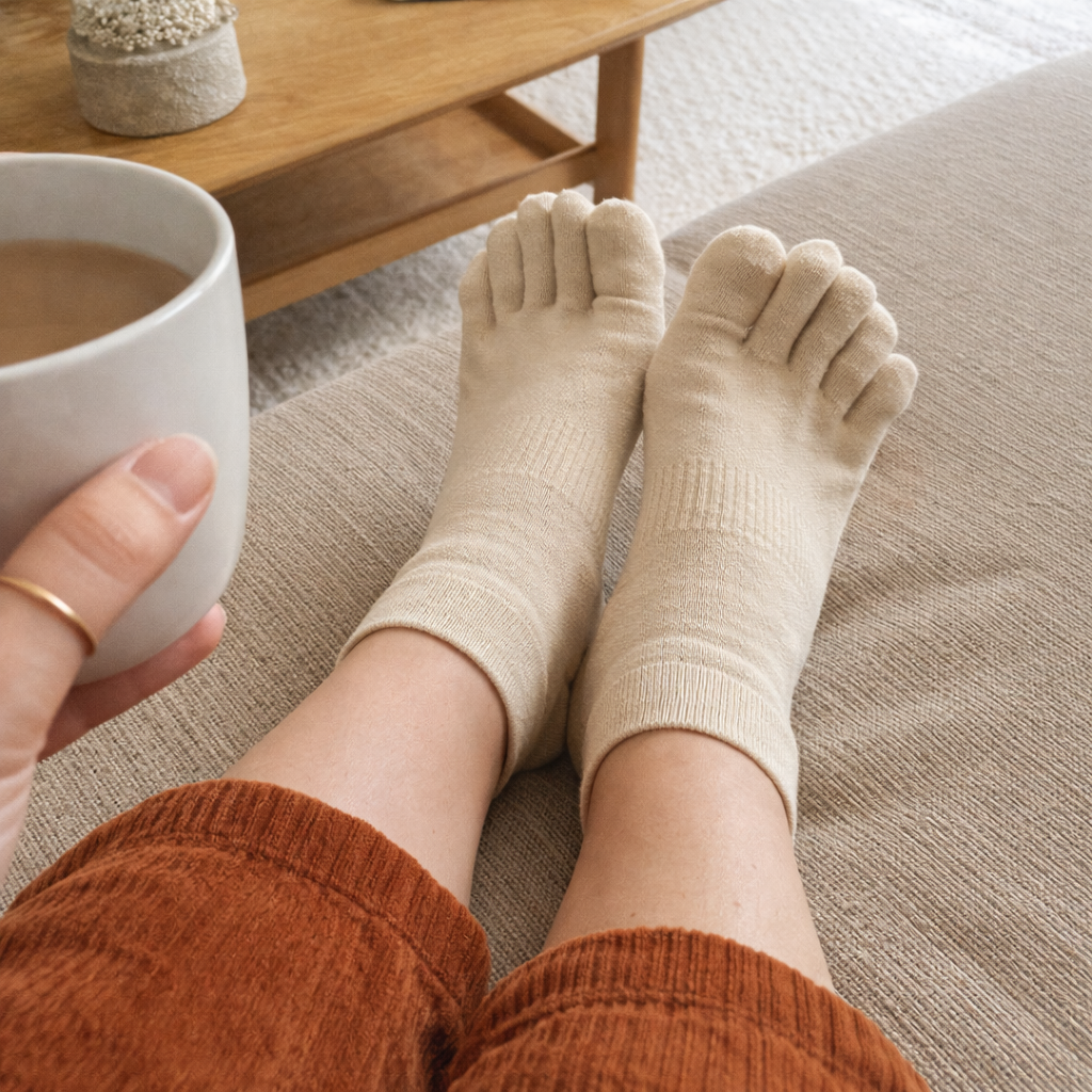 Quand les orteils sont serrés toute la journée, le pied compense. La fatigue s’installe. ABRYCA crée des chaussettes à 5 orteils pour laisser les pieds fonctionner plus naturellement.