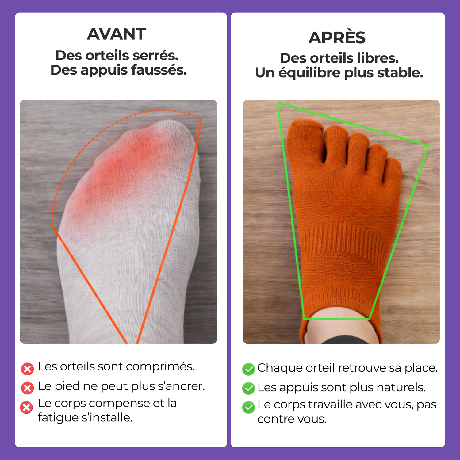 Séparer les orteils permet de réduire les zones de pression inutiles.