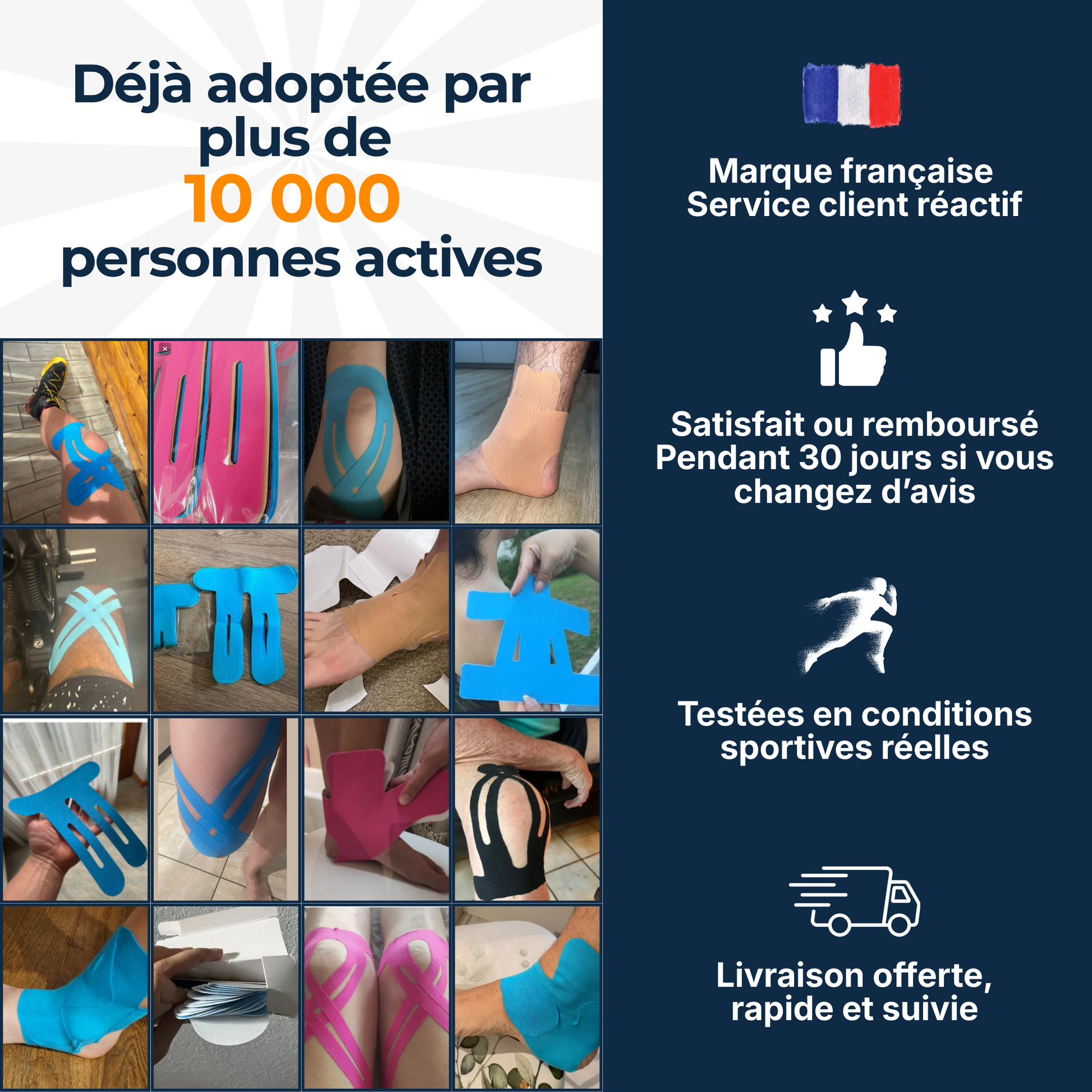 Oui. Nos bandes sont prédécoupées et pensées spécifiquement pour chaque zone (genou, cheville, épaule, dos), afin d’apporter un soutien ciblé et confortable, sans immobilisation.